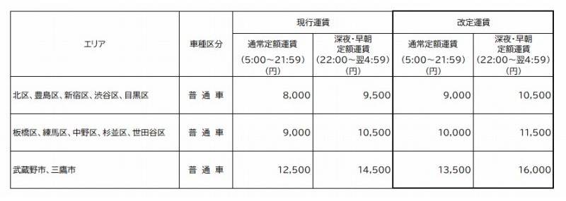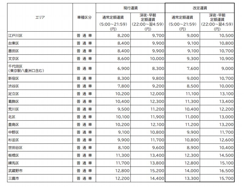 タクシー(東京23区・武蔵野市・三鷹市)運賃・料金の改定について
