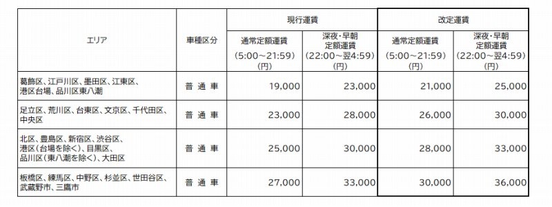 日本交通株式会社 タクシー運賃・料金改定の概要